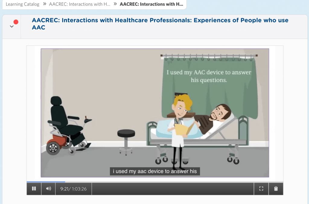 The presentation included animated recreations of the experiences of people who use AAC during medical interactions